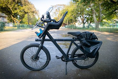 まず考えたのが快適さだ。ロードバイク愛好家には怒られそうだが、子供を乗せて快適に移動するには電動自転車であることが必須と判断した。どの電動自転車を使うかは悩ましいところだが、走りを追求しすぎると安全性に疑問が出てくる。検討を重ねた結果、前回記事(40万円超えの電動自転車がもたらす感動の移動体験! VanMoofのEバイク「Electrified X2」の魅力=https://www.bcnretail.com/news/detail/20200420_168626.html ※現在は新モデルがよりリーズナブルな価格で販売中)で紹介させてもらったVanMoof製電動自転車の性能が抜群で、これをベースにすることにした。