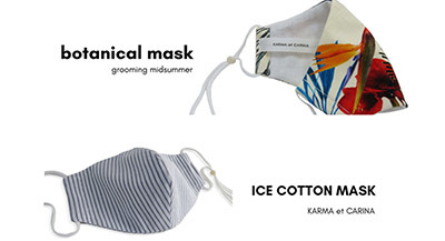 KARMA et CARINA(カルマ・カリーナ)は、天然素材であるアイスコットンを使ったマスクと、京都産のボタニカル生地を使ったマスクの計2種の夏用マスクを、6月8日にオンラインショップ限定で販売開始した。価格は2480円。