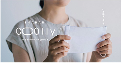 クーリイは、抗菌防臭加工を施した綿100%の生地と吸水速乾の機能性素材を組み合わせた、今治メイドの手ぬぐい「冷感サマーマスク」。肌にあたる生地に機能性ポリエステルを使用し、湿気もすぐに逃がすため、さらさら快適な着け心地が続くという。