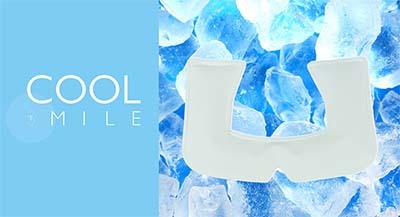 クールスマイルは、オリジナル素材の高機能マスク「フォアシフォンマスク」専用の繰り返し使用可能な保冷剤。フォアシフォンマスクは、超強撚糸を使用し繊細でなめらかな肌触りで、綿100%なのに伸縮性に優れ、「ふぁっとほどよくフィットする」ことからファンが増加している。