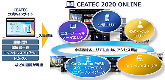 電子情報技術産業協会(JEITA)と情報通信ネットワーク産業協会(CIAJ)、コンピュータソフトウェア協会(CSAJ)で構成するCEATEC実施協議会は6月30日、秋にオンラインで開催予定の「CEATEC 2020 ONLINE」(10月20~23日)の開催概要を公開した。同日、出展の申込受付を開始した。