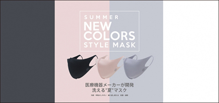 NMTJapanは、冷感機能を搭載した高機能立体マスク「FENICE サマースタイルマスク」にブラックとアクアグレーの新色を投入し、ラインアップを強化した。税別価格は、XSサイズが980円、S/M/Lサイズが1080円。