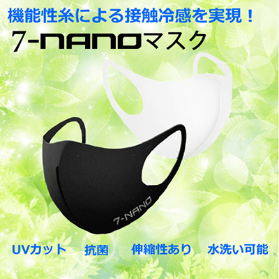 7-NANOマスクは、「ASKIN」と「Jurasil」の2種類の機能性繊維を使用した、夏に快適なマスク。ASKINは、半永久的冷感ポリエステル素材で、接触冷感に加えUV遮断効果、吸湿・速乾、透け防止機能がある。