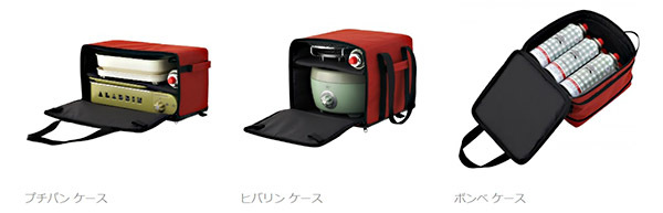 運搬専用キャリーケースの「LOGOS×SENGOKU ALADDIN プチパン ケース」「LOGOS×SENGOKU ALADDIN ヒバリン ケース」「LOGOS×SENGOKU ALADDIN ボンベ ケース」は、表地に難燃性の極厚生地を採用していることに加え、ケース全面にフォームが入っていて、外部からの衝撃を緩和し、キャンプなどの野外での使用に適している。