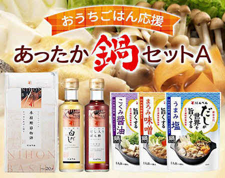 にんべんは、公式通販サイト「にんべんネットショップ」で販売中の「おうちごはん応援セット」に冬の季節限定4セットを加えて11月4日から特別価格で販売する。「おうちごはん応援セット」は、計画比150%の販売実績と好調のセット品となる。