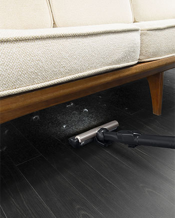 新設計のパワフル スマートヘッドlightでは、ヘッドの前後幅を小さくするなど形状を一新。ヘッドの取り回しをラクにできる「クルッとヘッド」で掃除しにくい壁ぎわや、「ペタリンコ構造」で家具の下など低いところも掃除できる。