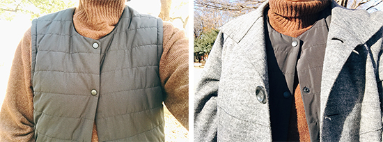 左が「ヒートベスト」。右がユニクロの「ウルトラライトダウンコンパクトベスト」