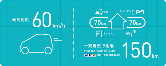道路運送車両法の車両区分は「超小型モビリティ(型式指定車)」(最高速度時速60km以下、高速道路等は走行不可)となり、全長2490mm×全幅1290mm×全高1550mmのコンパクトボディ、最小回転半径を3.9mで狭い道でも運転しやすくした。軽自動車向けの基準をもとにした超小型モビリティ用の安全基準に準拠し、独自の安全装備として、歩行者などが検知可能なプリクラッシュセーフティ、インテリジェントクリアランスソナー[パーキングサポートブレーキ(静止物)]を搭載する。