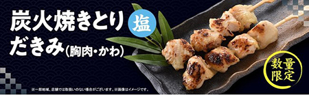 新商品で使っている「だきみ(抱き身)」とは、鶏の胸肉を鶏皮で巻いた焼とり。柔らかい胸肉をジューシーで弾力のある皮で丁寧に巻き、香ばしく炭火で焼き上げている。味付けは、岩塩でしっかりと下味を付けた後、焼き上げる際に滑らかな味わいの「長崎県産 五島灘の海水塩」を使用し、鶏の旨味を引き出している。