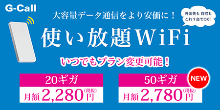 50ギガ使い放題で月額2780円、テレワークにも適したG-CallのモバイルWi-Fiルータ
