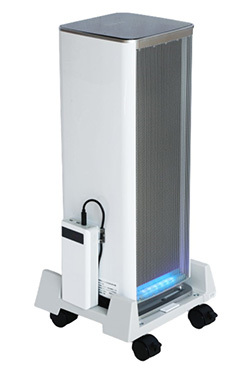 本体にはキャスターを備えているので、人が集まる場所に合わせて手軽に移動可能で、感染リスク低減効果をさらに高められる。