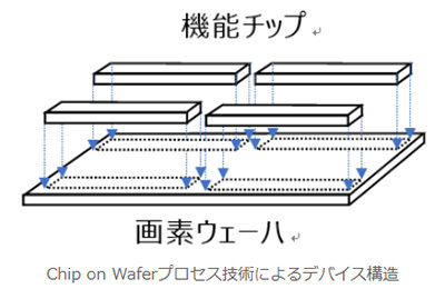 また、Chip on Wafer(チップ オン ウェーハ)プロセス技術を用いた独自のデバイス構造とインターフェイス技術により、従来比約4倍の出力データレートとなる高速な画像読み出しを可能とした。