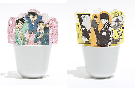 紙と水だけなので電源いらずのエコなつくり。ファンにとってうれしい原画を使用したレア仕様で、コップの縁にぐるっと配された赤井さんが、ぐんぐん水を吸い込んで乾きから守ってくれる。