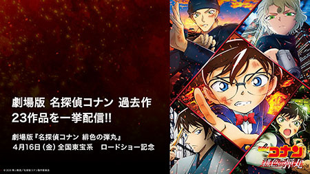 配信ラインアップは、「名探偵コナン 時計じかけの摩天楼」、「名探偵コナン 14番目の標的(ターゲット)」、「名探偵コナン 世紀末の魔術師」、「名探偵コナン 瞳の中の暗殺者」、「名探偵コナン 天国へのカウントダウン」、「名探偵コナン ベイカー街(ストリート)の亡霊」、「名探偵コナン 迷宮の十字路(クロスロード)」、「名探偵コナン 銀翼の奇術師(マジシャン)」、「名探偵コナン 水平線上の陰謀(ストラテジー)」、「名探偵コナン 探偵たちの鎮魂歌(レクイエム)」、「名探偵コナン 紺碧の棺(ジョリー・ロジャー)」、「名探偵コナン 戦慄の楽譜(フルスコア)」、「名探偵コナン 漆黒の追跡者(チェイサー)」、「名探偵コナン 天空の難破船(ロストシップ)」、「名探偵コナン 沈黙の15分(クォーター)」、「名探偵コナン 11人目のストライカー」、「名探偵コナン 絶海の探偵(プライベート・アイ)」、「名探偵コナン 異次元の狙撃手(スナイパー)」、「名探偵コナン 業火の向日葵」、「名探偵コナン 純黒の悪夢(ナイトメア)」、「名探偵コナン から紅の恋歌(ラブレター)」、「名探偵コナン ゼロの執行人」、「名探偵コナン 紺青の拳(フィスト)」。