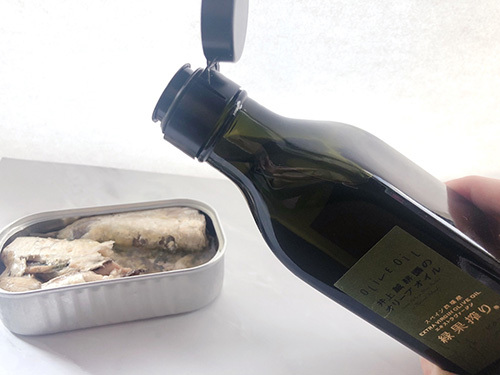 このままでもおいしくいただけないかと、オリーブオイルと塩をプラスしてみた。もともと原材料にオリーブ油と書かれているが、漬け込んでいる油にフレッシュな風味が加わり味が格段にアップ。ほんの少し手を加えるだけでこのままオードブルとして食卓に出せる一品となった。ぜひとも白ワインと一緒にいただきたい。