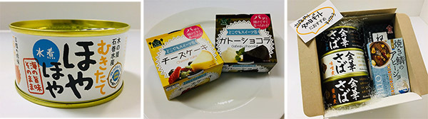 ほかにも、宮城県産のほやを同時製法で新鮮なまま水煮にした宮城県・木の屋石巻水産の「宮城県産ホヤ水煮」(583円)や、東京都・トーヨーフーズが発売するミニサイズのスイーツ缶「どこでもスイーツ缶」(378円)、宮城県・木の屋石巻水産の「さば缶父の日ギフト」(2723円)など、ローカル缶詰約65種類を用意している。