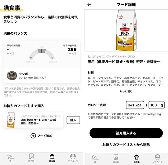 フードの種類と食事の頻度、運動のバランスから食事量が最適かを判断でき、補充もアプリから直接注文できるのでかなり便利になった。今後は体重を管理できるボードや、万が一逃げ出してしまった際に見つけられるサービスも予定しているそう。