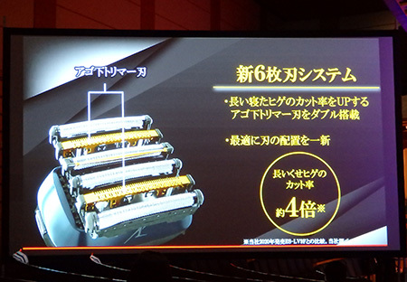 実際に記者も新製品のデモ機を借り、土、日は剃らずに伸ばした後で剃ってみたが、従来よりも明らかに違う切れ味を実感した。従来の5枚刃も使ったことがあるが、どうしてもあご下のくせヒゲの剃り残しが生じてしまい、個人的なものとあきらめていた。それだけに、今回の6枚刃の切れ味の印象も強かった。