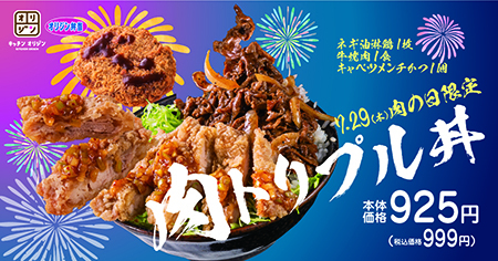 ボリューム満点「肉トリプル丼」期間限定販売!オリジン弁当・キッチンオリジン全店で