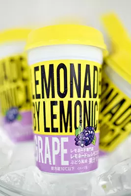優しい甘さのレモネードにぶどう果汁をくわえたチルドカップ入りのドリンクで、暑い時期にぴったりのすっきり爽やかな味わいを楽しめる。