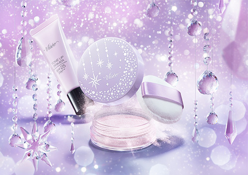 新商品では、こうしたニーズに応え、「トーンアップパウダー」、「毛穴カバーパウダー」、「美容液成分(保湿)」を配合しており、肌をワントーンアップさせ、毛穴を綺麗にカバーし、乾燥感のないしっとりなめらかな感触の肌に仕上げる。容器のデザインは、ルースパウダーのカラーとマッチする淡いラベンダー色を使用し、“魔法の軌跡のように”輝くグラフィックをデザイン。商品の世界観を効果的に伝えるとともに、包装パッケージにはユニコーンカラーをベースに容器と同じ輝くモチーフをちりばめた。