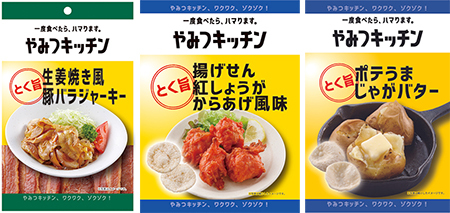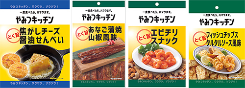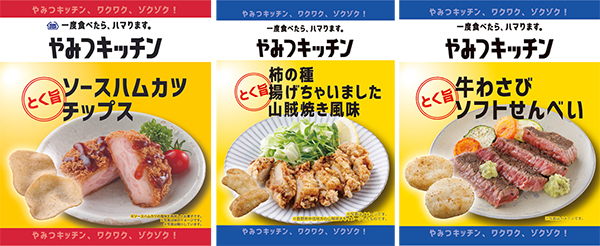 やみつキッチンシリーズは、“やみつきになる味”のドキドキ・ワクワクするお菓子をコンセプトとし、コロナ禍で自宅で過すことの多い現在に、おやつやおつまみにも合う様々な楽しい商品を用意。その日の気分でチョイスして楽しむことができる。