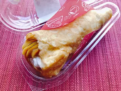 大人気クレープの限定新商品「紅はるかのスイートポテトクレープ」(298円)