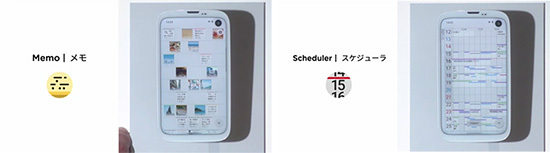 たとえば、スケジューラは長いスパンであっても予定が一目瞭然で分かるように日を縦軸、時間を横軸に設計。ピンチイン・ピンチアウトで直感的に確認ができるようにした。メモも全体が俯瞰できるデザインで再設計。ヘッダーカラーによる分類もできるなど、実用性を重視した。ウォッチはデザインもさることながら、音にこだわり、オリジナルサウンドを搭載した。