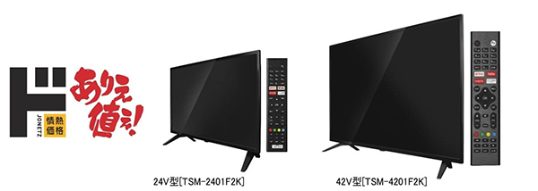 ドン・キホーテは、オリジナルブランド「情熱価格」の新商品「AndroidTV機能搭載チューナーレス スマートテレビ」24型/42型を、12月10日から全国のドン・キホーテ系列店舗(一部店舗を除く)で発売する。価格は、24型が2万1780円、42型が3万2780円。