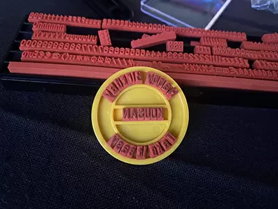 文字のゴム板を並べるとオリジナルのハンコが作れる