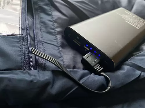 これは筆者の完全な勉強不足であるが、ジャケットから伸びたコードは充電するためのものではなく、バッテリーに繋ぐためのものだったのだ。そしてそのバッテリーは別売りときている。むむむ。しかし購入したサイトにバッテリーが別売りの記載がないのは問題なのではないか!と逆ギレしてももう遅い。そりゃ他の電熱ジャケットと比べて激安なはずだ。