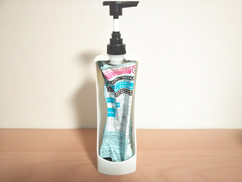 シャンプーやコンディショナーを使っていて最後の方で残量が少なくなるとポンプを押しても液体が出てこなくなったり、使い切ったと思っていたら底の角の方に液が残っていたり…そんな経験はないだろうか。お湯を少し足して薄めてみたり、ボトルをひっくり返して出してみたり、もうあきらめて洗ってしまうか、そのまま詰め替えてしまったりすることになりがちだ。