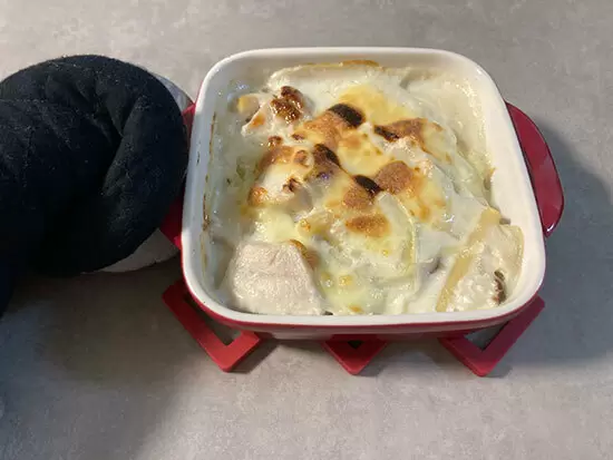 料理も映えるニトリの「シリコーン鍋敷き(マグネット付き)」(筆者撮影)