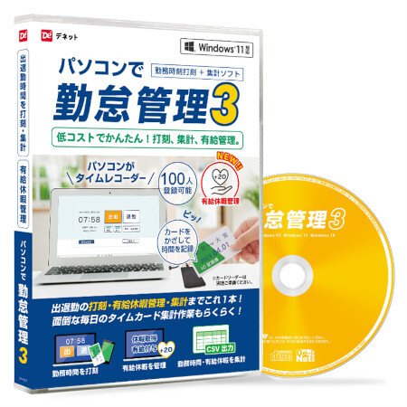 デネットは、出退勤時間を管理するソフト「パソコンで勤怠管理3」を3月25日に発売した。価格は9990円。