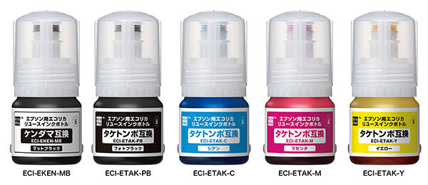 エコリカは、エプソン エコタンク搭載モデル用ケンダマ・タケトンボシリーズ互換リユースインクボトルを4月14日に発売する。