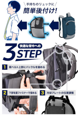 冷却プレートとファンのW効果でひんやり涼しい、サンコーの「ひんやりュック」