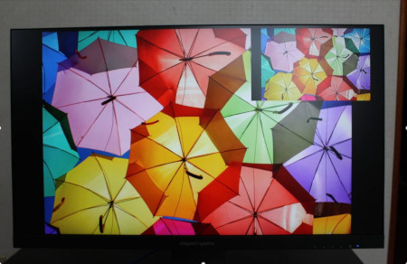 IPS系のパネルなので視野角は広いです。視野角は178°で、どこからみても鮮明な映像を楽しめます。