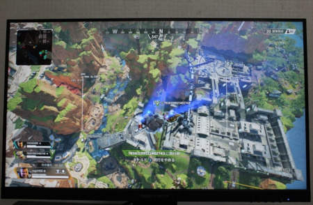 またApex LegendsなどのFPSでは瞬時の判断が求められますが、リフレッシュレートの高さから敵の視認性も高まり、低リフレッシュレートのモニターと比較してエイムも合わせやすいといったメリットもあります。また急に敵と遭遇した場面でも、心なしか落ち着いて行動でき、これは滑らかな描写がもたらす安心感によるものだと考えました。