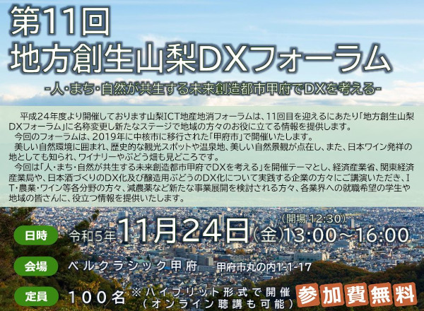 甲府市で「地方創生山梨DXフォーラム」、11月24日に