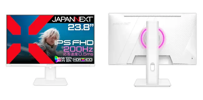 JAPANNEXTは11月22日に、23.8インチのIPSパネルを採用し、高速応答&高速リフレッシュレート対応で、昇降式多機能スタンドを搭載した、フルHDでホワイトカラーのゲーミング液晶ディスプレイ「JN-IPS238G200F-HSP-W」を発売した。公式オンラインショップでの価格は2万3980円。