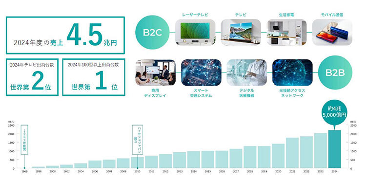 日本ではテレビメーカーと認識されているハイセンスだが、グローバルでのハイセンスは生活家電もラインアップしている総合家電メーカーであり、ビジネス向けの製品やシステムも展開している。2024年度の売り上げは約4.5兆円にも達する巨大企業である。