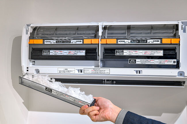 各社の自動お掃除機能ではホコリを自動で屋外に排出するタイプもある。手間が掛からないのは確かだが、設置している部屋の配管によってはホコリを屋外に排出できないケースもある。ダストボックスであれば配管を気にせず機能を使え、しかもMシリーズの大型ダストボックスならホコリを捨てる頻度も少なくて済むので便利だ。