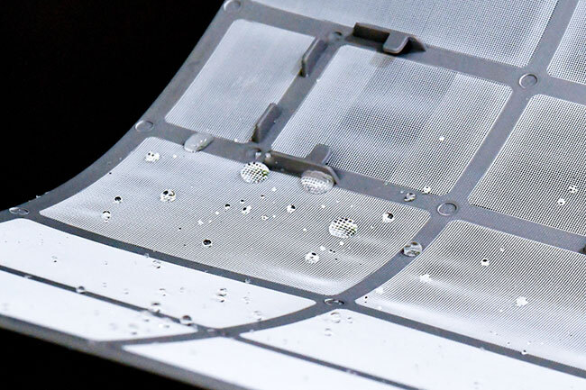 フィルターの表面ははっ水加工で水をはじく