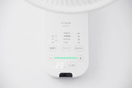 室内干しのサポートに役立つ「衣類乾燥モード」や、30分ごとに風量を1段階ずつ下げて運転し、最終的に風量1で運転を続ける「おやすみモード」、風の強弱をランダムにコントロールして心地よい風を送る「リズムモード」、本体の温度センサーで室温を検知して、自動的に室温に応じた風量と運転状態に切り替えて運転する「みまもりモード」といった、多彩な運転モードを備えている。あわせて、自動的に運転を開始・停止する入・切タイマーを搭載し、生活スタイルに合わせて使える。