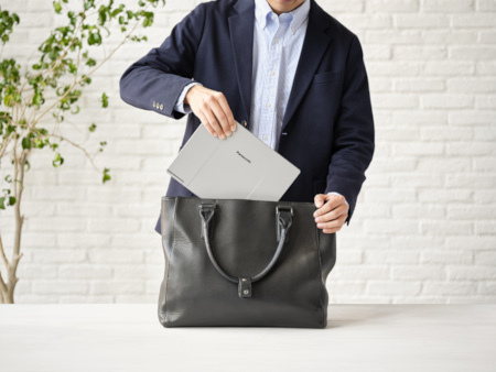本体は、A4サイズよりもコンパクトかつ薄型なので、バッグにすっきりと収められる。また、シンプルな構造の追求による軽量さで持ち運びしやすい。
