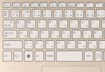 さらに、ハイエンドモデル「VAIO SX14-R」に採用されている静音キーボードを継承し、キー一つ一つを特別配合したUV硬化塗装でしっかりとコーティングすることによって、前モデルと比較して視認性を改善した。