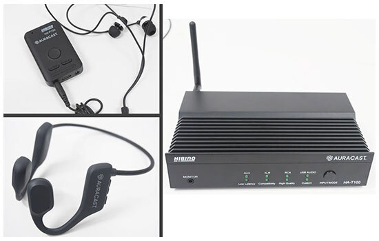 米調査会社のABI Researchによれば、今年、Auracastを使用する施設は世界で8万件程度になるという。現状ではまだまだ少ないが、2030年には約240万件にも拡大すると推計している。そんな意味で今年はAuracast元年と位置付けられているようだ。普及に勢いがつけば、それ以上のスピードで拡大していく可能性も高い。プロ向け音響機器を手掛けるヒビノでも、こうした状況に目を付け、Auracastを活用した業務用システム「AuraBroadcaster」を新たに開発した。早ければ、この9月にも発売する予定だという。手のひらに収まる超小型のポータブル送受信機「HA-P100」、耳掛け式の骨伝導レシーバー「HA-B100」、デスクトップに設置する送信機「HA-T100」からなる。