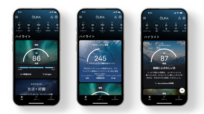 そのほか、科学的根拠に基づくパーソナライズされたインサイトを毎日提供し、日々のスコア表示に留まらない健康状態の傾向を明らかにするとともに、行動の指針を示して長期的な健康目標の達成をサポートする「Ouraメンバーシップ」も提供する。同メンバーシップに加入すれば、詳細な睡眠分析、リアルタイム心拍数およびワークアウト中の心拍数モニタリング、体調不良の早期検知や月経周期予測に役立つ体表温の変化の追跡といった、データのさらなる掘り下げが可能になるなど、さらに多くの機能を利用できるようになる。