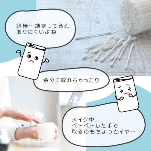 この綿棒おしあげくんがあれば、手が汚れているときでも1本だけを衛生的に、スムーズに取り出せるのが特徴だ。