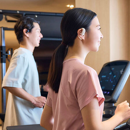 本体は、IPX5準拠の防水性能を備えており、ランニング中の汗や急な雨を心配することなく使用できる。あわせて、運動中でもズレにくい動きがしなやかな柔らかいフックを採用しているので、耳の大きさや形状に関係なく優しくフィットする。